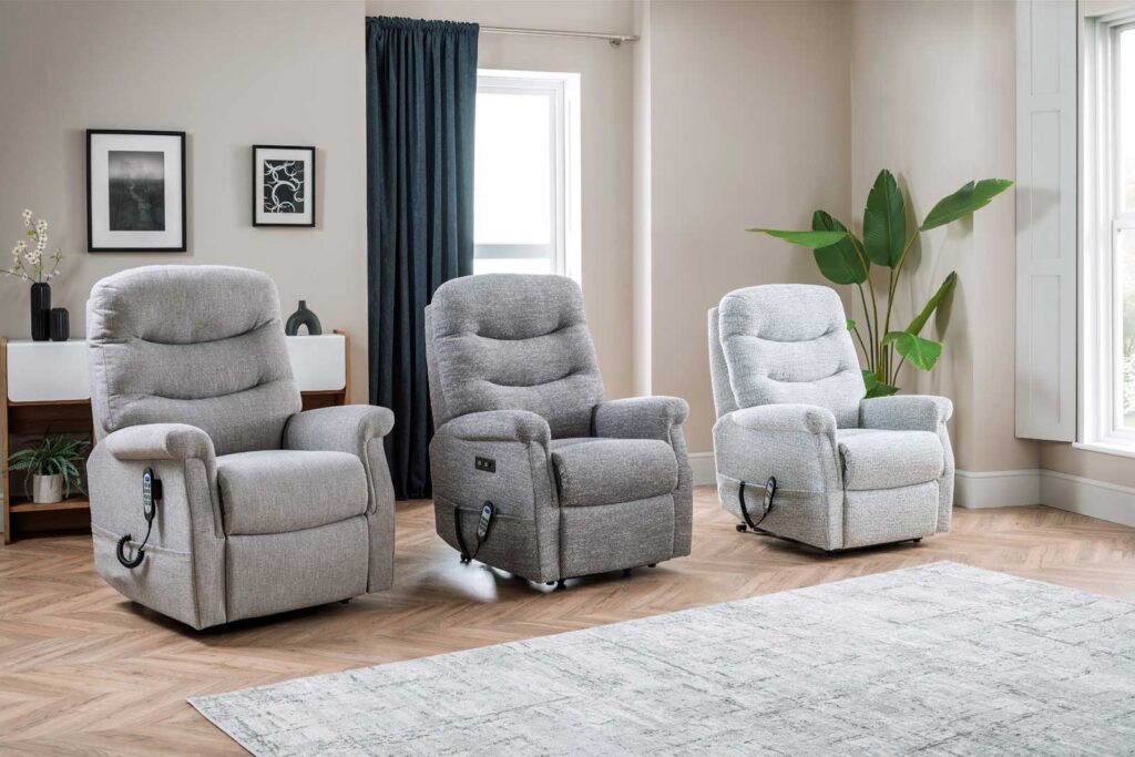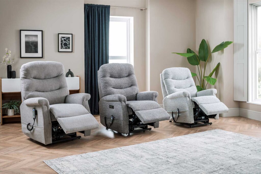 The Hollingwell range offers a stylish look, with a high back and softer arm detail for extra comfort. Along with innovative powered headrest and lumbar support options for all 3 chair sizes and powered settees.