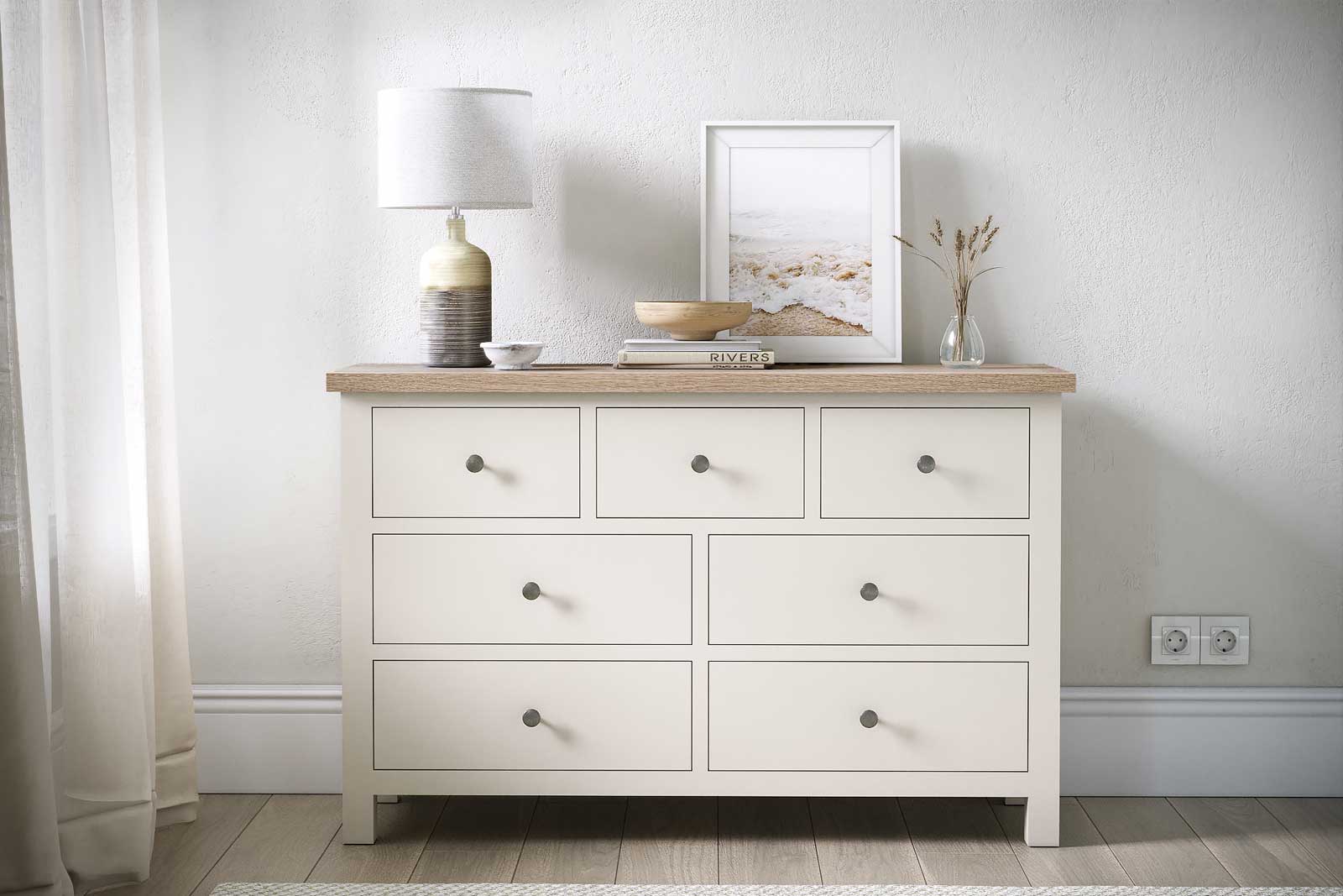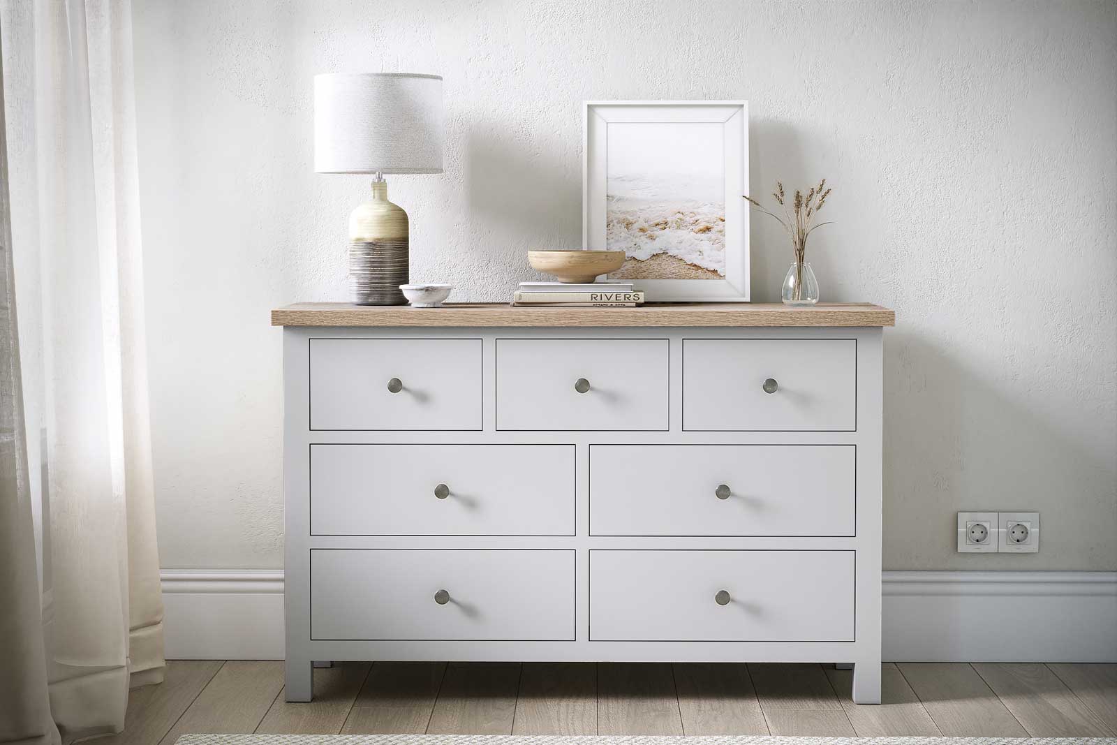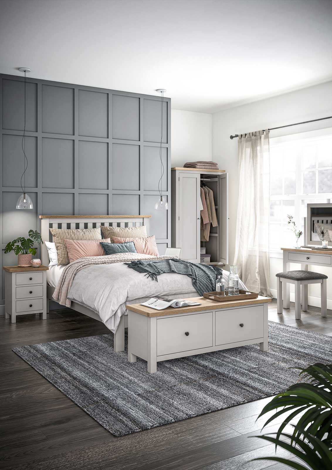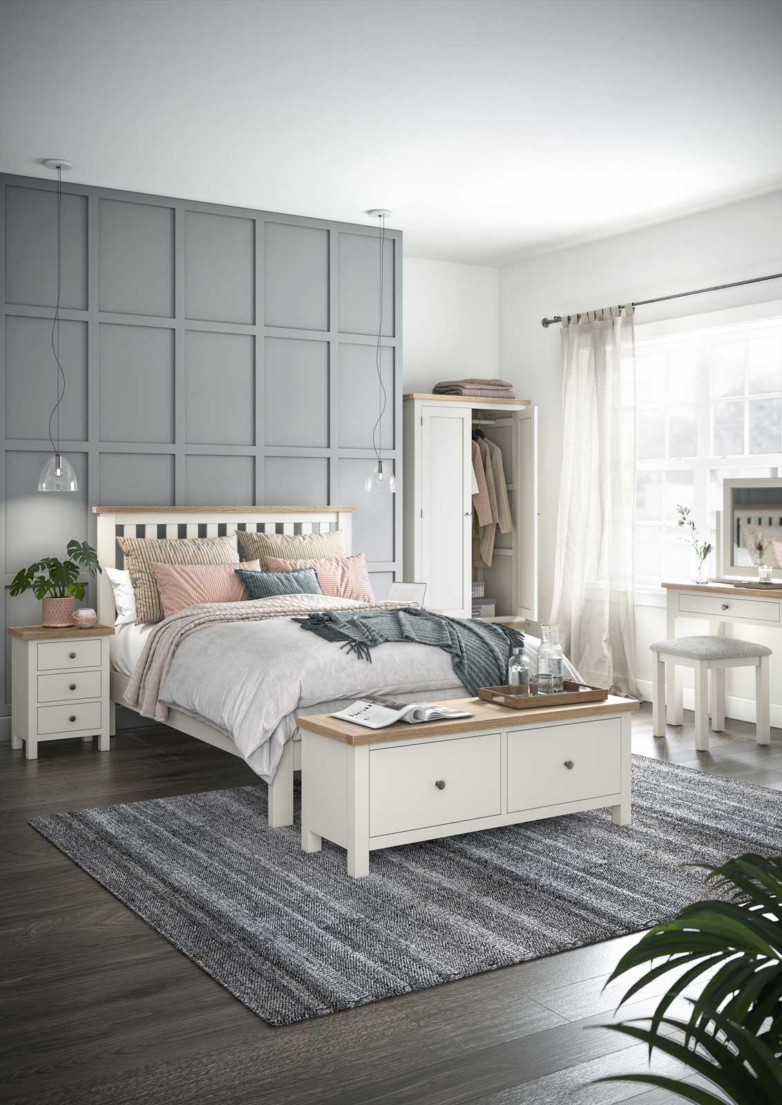 Modern yet contemporary, the range is available in a choice of colours – All Oak, Coconut White and Stone Grey with wooden or metal handles.