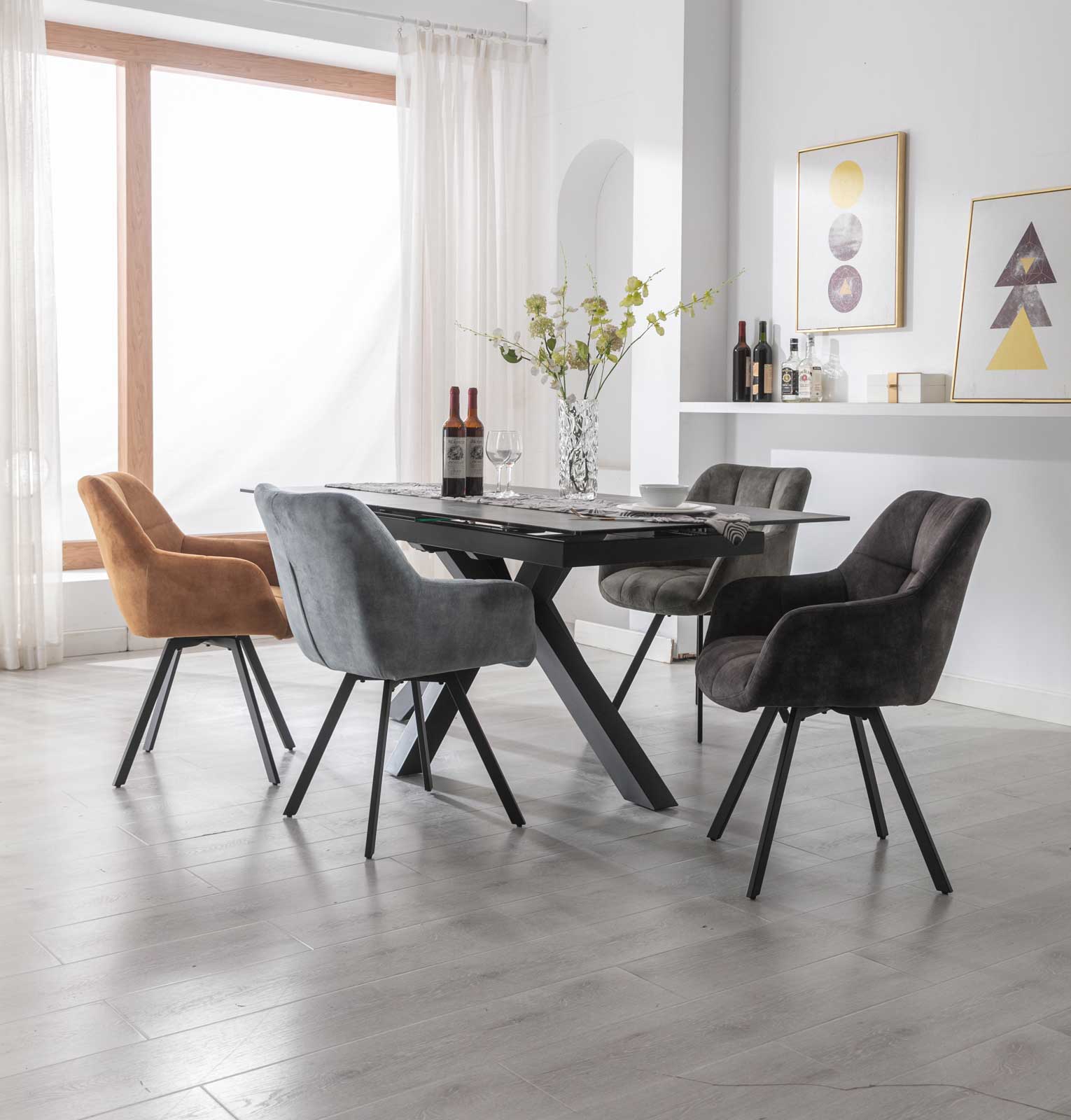 With dark grey sintered stone tops and black metal legs with matching occasional tables available to order, Sapphire will make an impact statement in any home