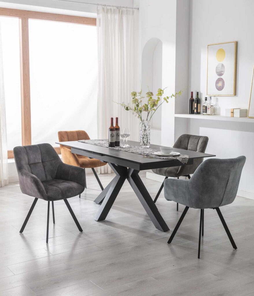 A 160cm extending dining table which has a smart automatic extension mechanism which you can extend or shorten with 1 smooth motion.