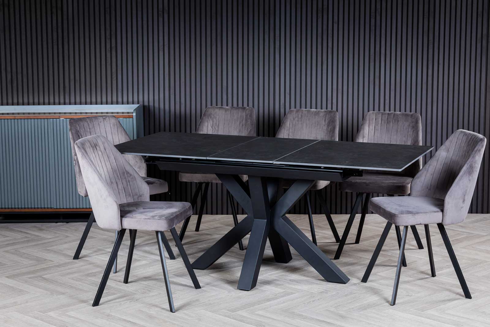 Virgo extending dining tables are designed to maximize utility without compromising style, available in a choice of colours – Muse White or Vik Dark Grey extending from 120-160cm